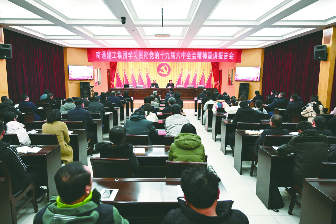张向阳董事长在主持报告会时指出,学习宣传贯彻好党的十九届六中全会精神,是当前和今后一个时期的集团公司首要政治任务。全公司上下要深入学习贯彻全会精神,切实从党的百年奋斗重大成就和历史经验中汲取智慧和力量,立足岗位埋头苦干、勇毅前行,奋力书写南通建工集团高质量发展的新篇章。他对进一步深入学习贯彻十九届六中全会精神提三点要求:一是学习领悟要更深更透;二是宣传宣讲要求实求活;三是贯彻落实要见行见效。