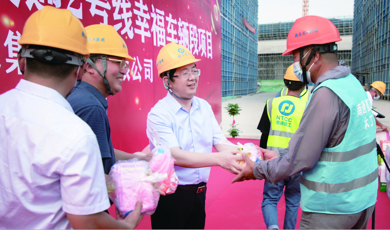 张向阳董事长一行先后来到一分公司南通开发区星湖城市广场二期商务楼工程项目、三分公司南通开发区R20042地块项目、南通城市轨道交通2号线一期工程幸福车辆段及平台建设项目看望慰问一线职工,每到一项目,他都亲手将毛巾、清凉用品、饮料等防暑降温用品发放到施工一线职工手里,并与他们亲切交谈,他对现场全体不畏高温、坚守岗位的一线职工表示衷心感谢,赞扬了他们战高温、斗酷暑的精神,叮嘱他们在做好本职工作的同时,要注意自我保护,劳逸结合,防止高温中暑。他同时要求项目部多方举措防暑降温,保证高温作业条件下项目部职工的身体健康;科学安排作息时间,避免疲劳施工,保证高温季节安全生产。各下属单位和项目部要大力开展“送清凉”活动,切实做好职工的后勤保障工作,提高抵御酷暑的能力,保证职工能够以良好的身体状况、饱满的精神状态投入到工作中。